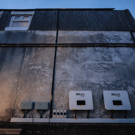 The system comprises 88 × 460 W lightweight solar panels, delivering a total installed capacity of approximately 40.5 kWp, coupled with 2 × 20 kW Solax hybrid inverters. The lightweight panel technology was selected to suit the structural characteristics of the building while maintaining high performance and long-term reliability.